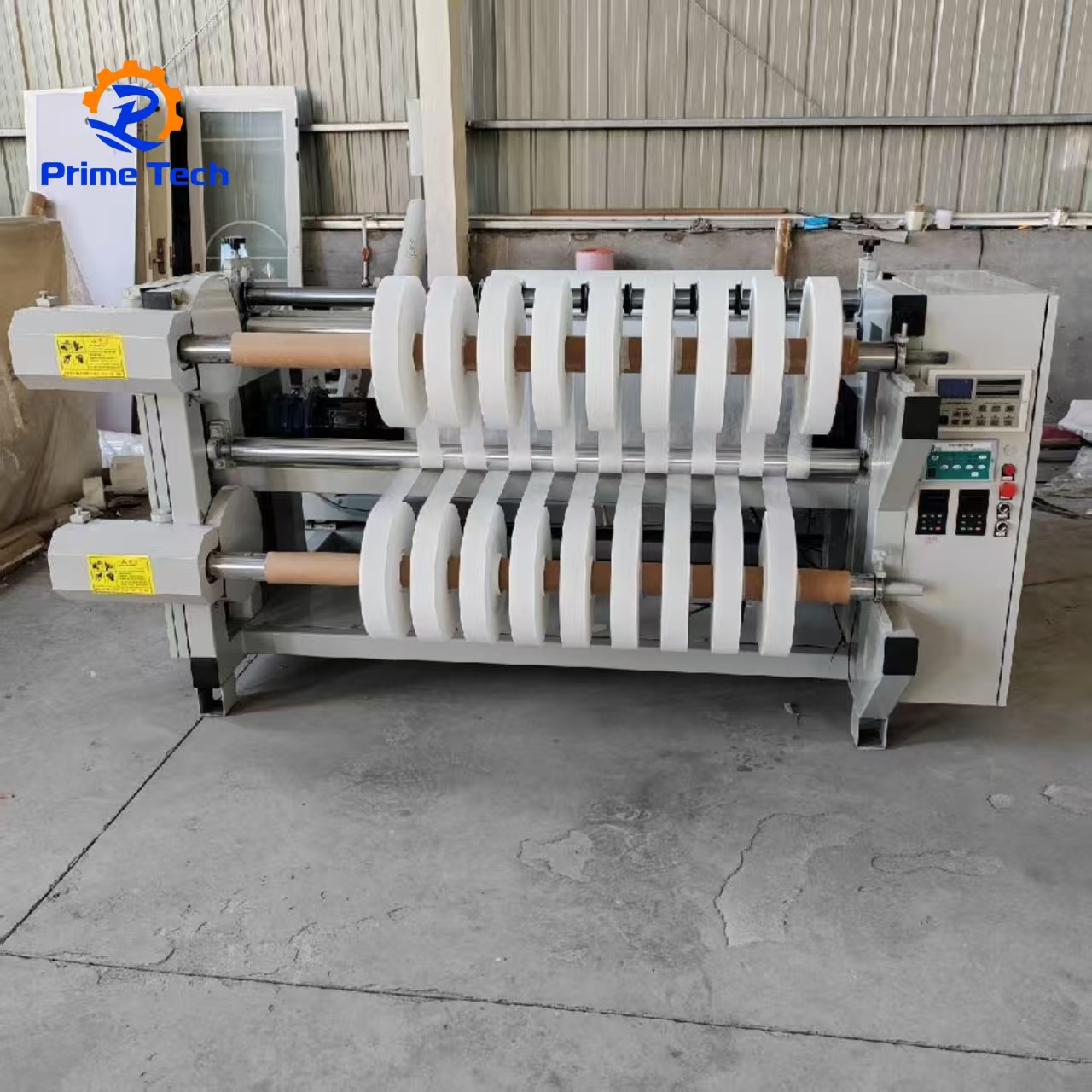 This industrial slitting machine is used for longitudinal slitting and rewinding of various flexible and roll materials, converting wide rolls into multiple narrow rolls with precise width control.